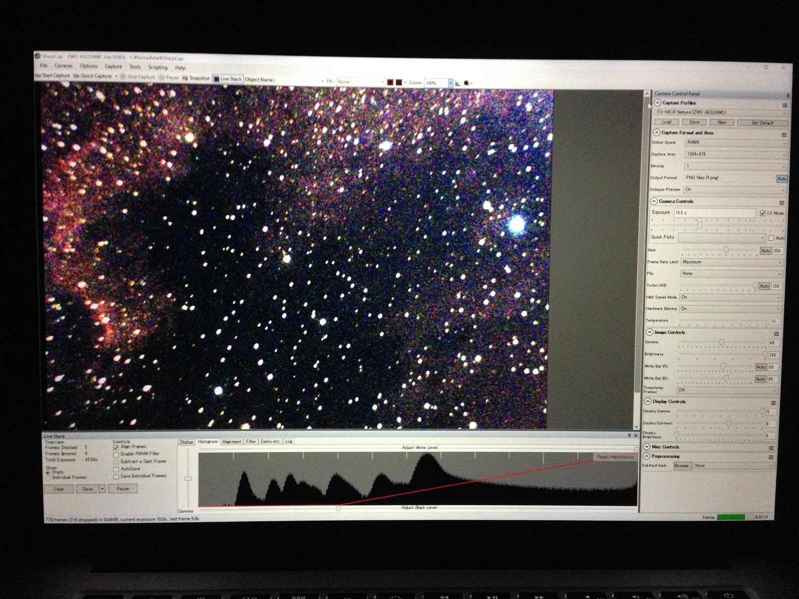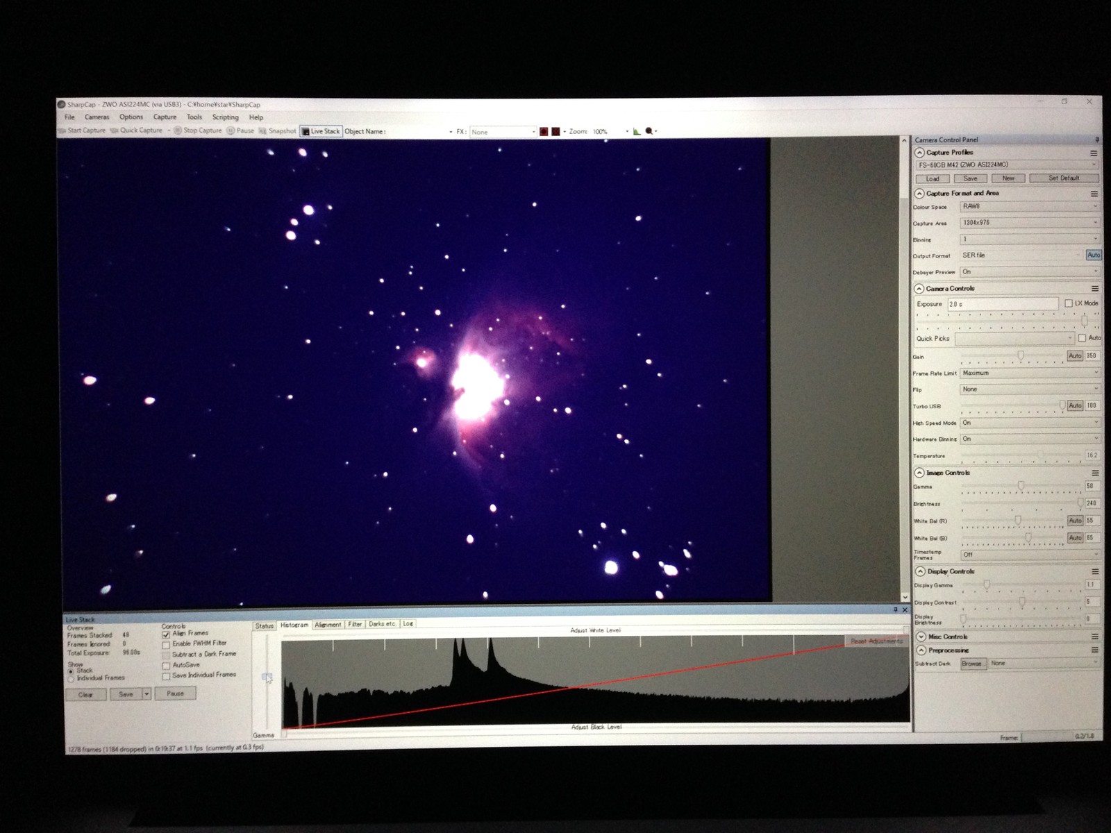 手持ちのASI224MCはCSマウントにするアダプターが付いているのですが、Cマウントレンズはそのままでは取り付けられない(取り付けることはできますが、合焦しない) ので、CマウントからCSマウントに変換するアダプターも一緒に買いました。取り付けた様子は、すでに上の全体像のCCDのところを見るとわかります。