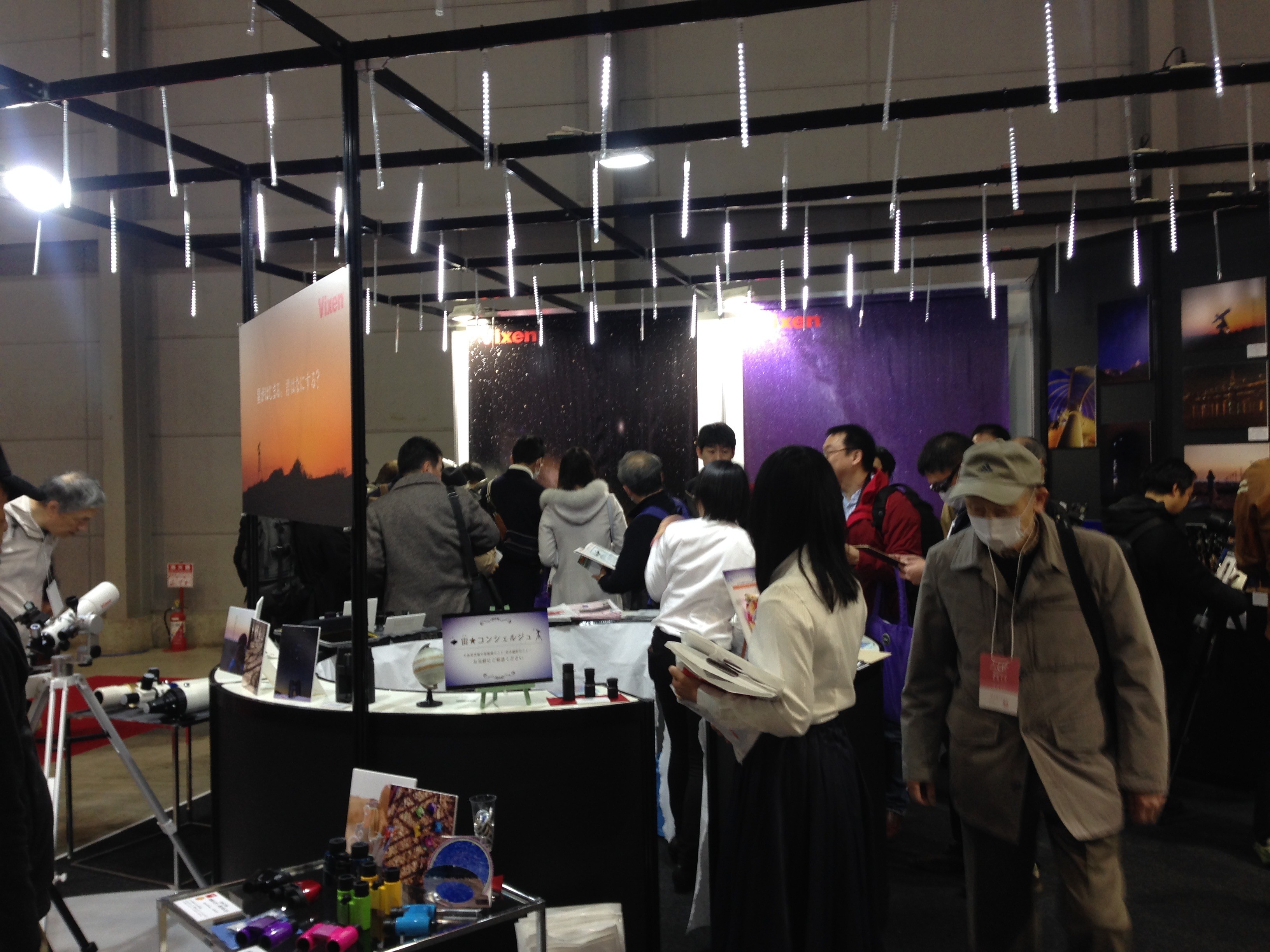 いうまでもなくCP+はカメラの展示会で、その中のごく一部に望遠鏡関連の展示があるだけです。来ている人を見ているとカメラ人口と天文人口の差を見ている気がしました。というのも、望遠鏡の展示は端から順にKenko、Vixen、Borg、Celestronくらいで、せいぜいあとは双眼鏡が二つあるくらいで、いまいち盛り上がりに欠けているのです。