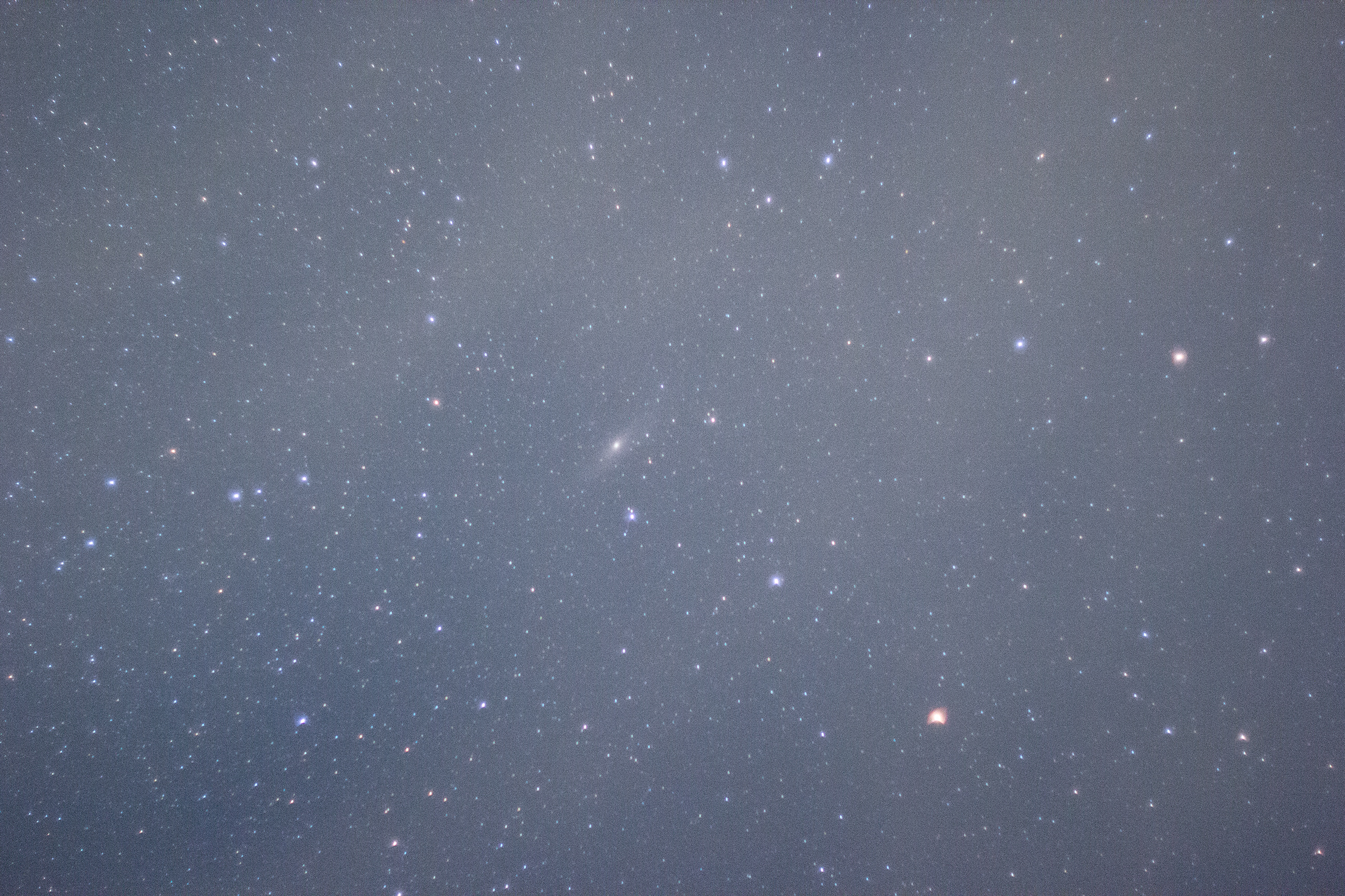 自動追尾なしだとすると、天の赤道儀上の星は1時間あたり15度進むので、0.75度だと3分で視野の端から端まで移動してしまうことになります。実際に測って見ると、真ん中に入れたターゲットが1分40秒程度で真ん中と端の中間くらいまできてしまいました。天の赤道からは少し外れた星を狙ったのと、多少の誤差はあるのですが、まあほぼ計算通りです。
