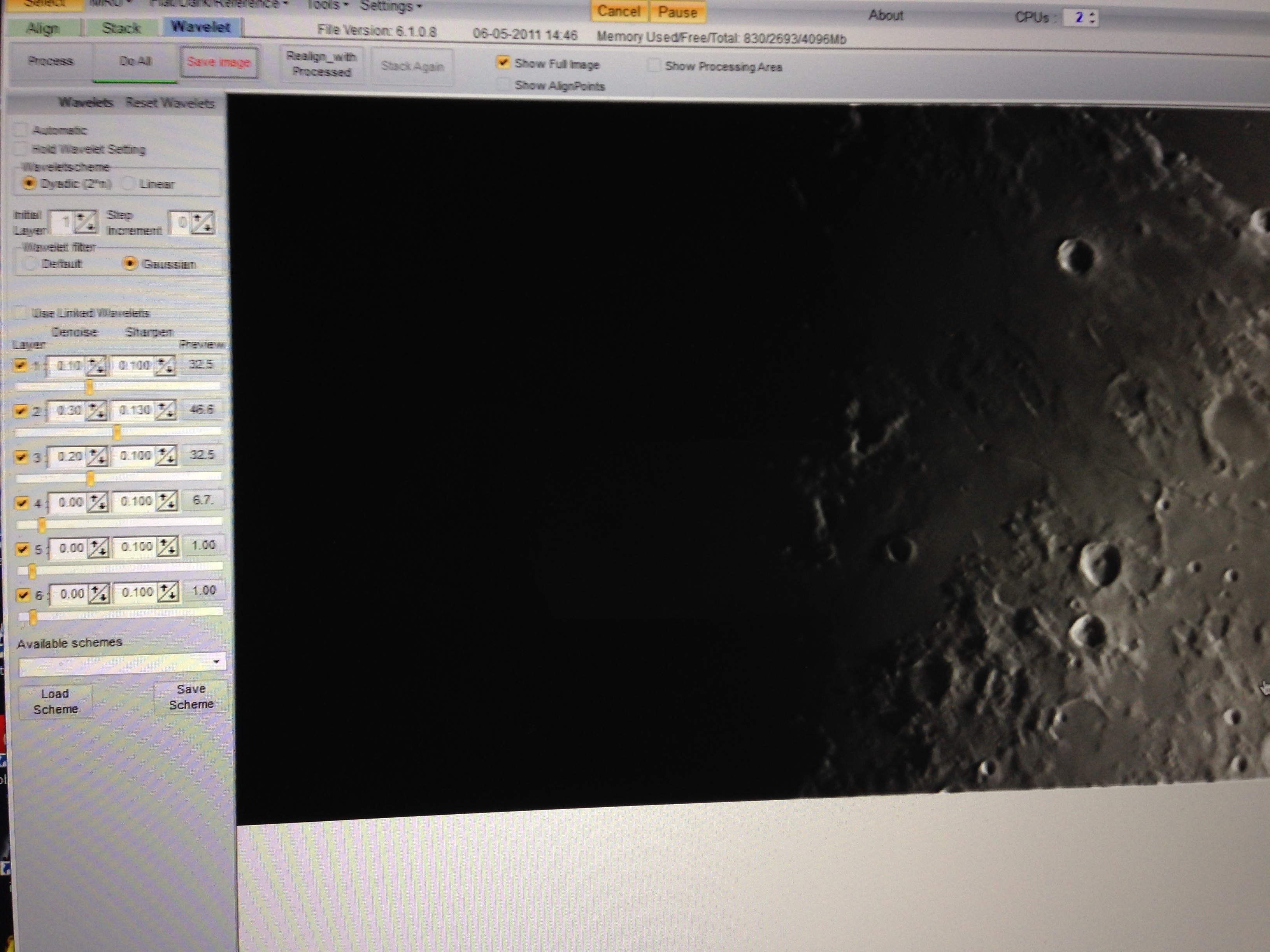 撮影した動画はいつも通りAutoStakkert!3でスタックして、Registaxでwavelet処理です。確認したかったことの一つ、モノクロカメラの性能ですが、RGBとLではやはり細かさに明らかな違いが出るようで、新兵器投入の甲斐はあったのですが、まだいまいち釈然としないところもあります。理屈の上ではASI290MMの方が分解能はいいのは当たり前なのですが、それでも以前ちょっと考察したように、25cm程度の口径ならASI224MCの解像度でも十分足りているはずです。それでも明らかにモノクロの方が分解能が良くなるのはやはりDeBeyer時の処理によるものなのでしょうか?もう少し検証が必要なようです。