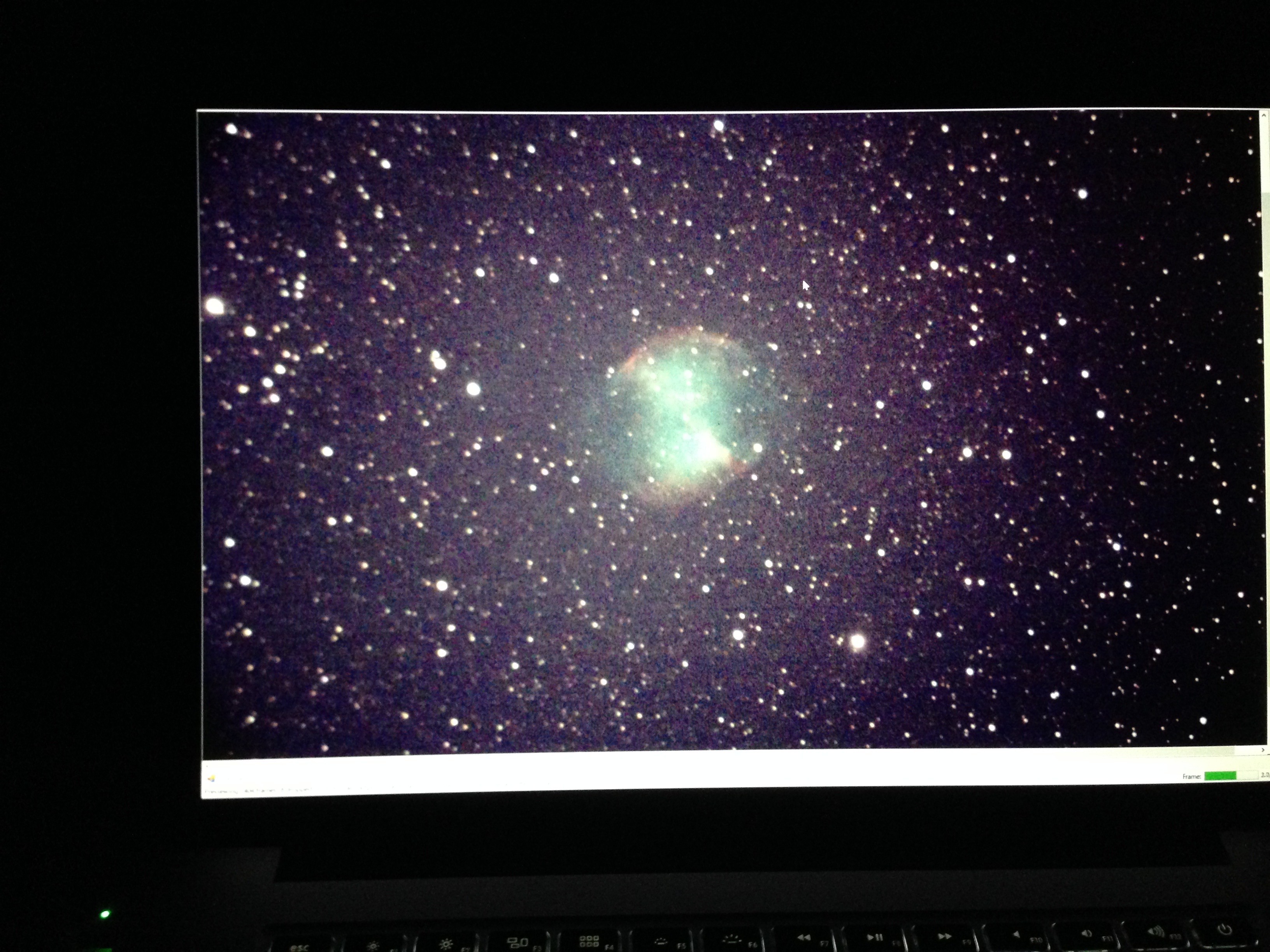 先週の調整失敗があったので、いつかの夜の撮影に備えて、前日のまだ明るいうちに遠くのBSのパラボラアンテナを見ながら副鏡の調整をしておいたので、ピントはそこそこあっているはずです。前日の晩は曇りでダメでしたが、この日は昼間の雨でが止んだ後、ずっと曇っていたのですが、一旦ベットで横になってふと外を見たらきれいに晴れていたので急遽撮影開始です。