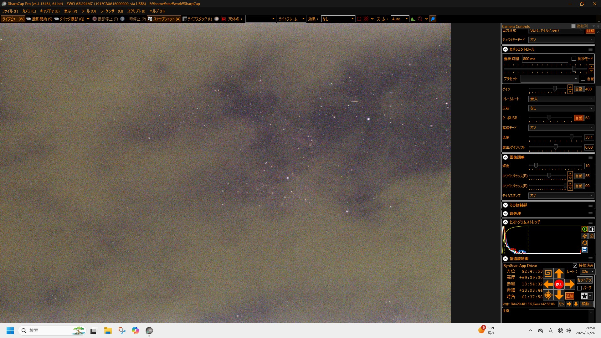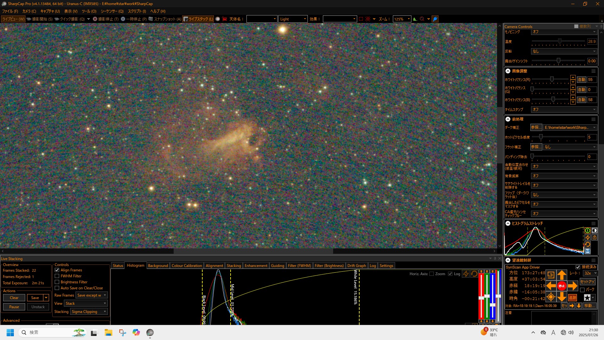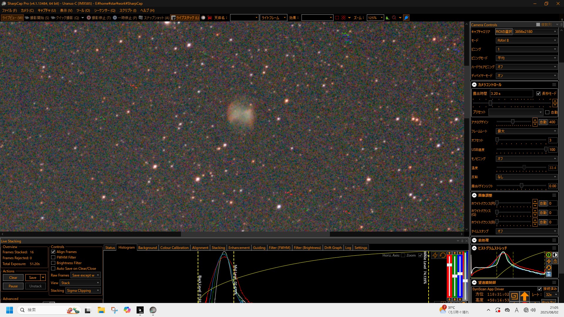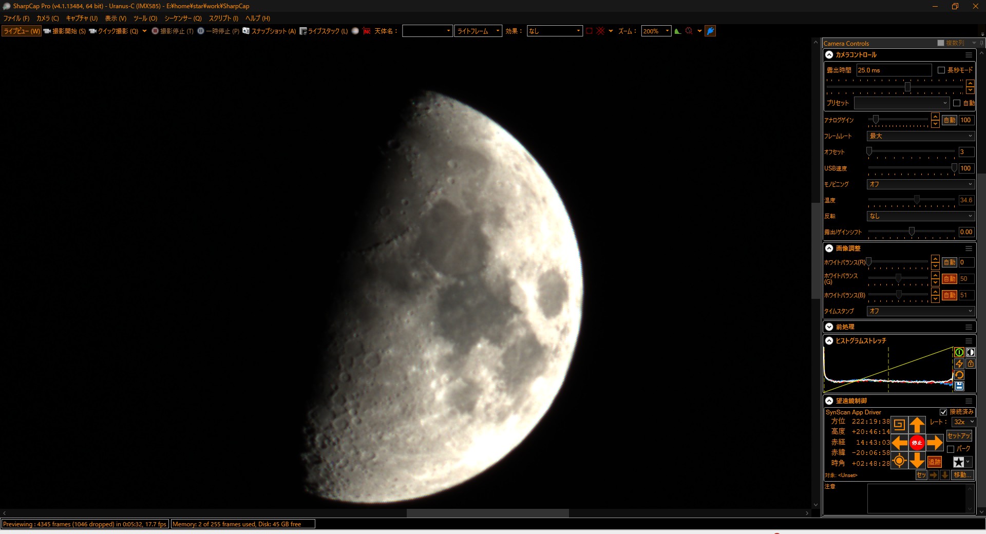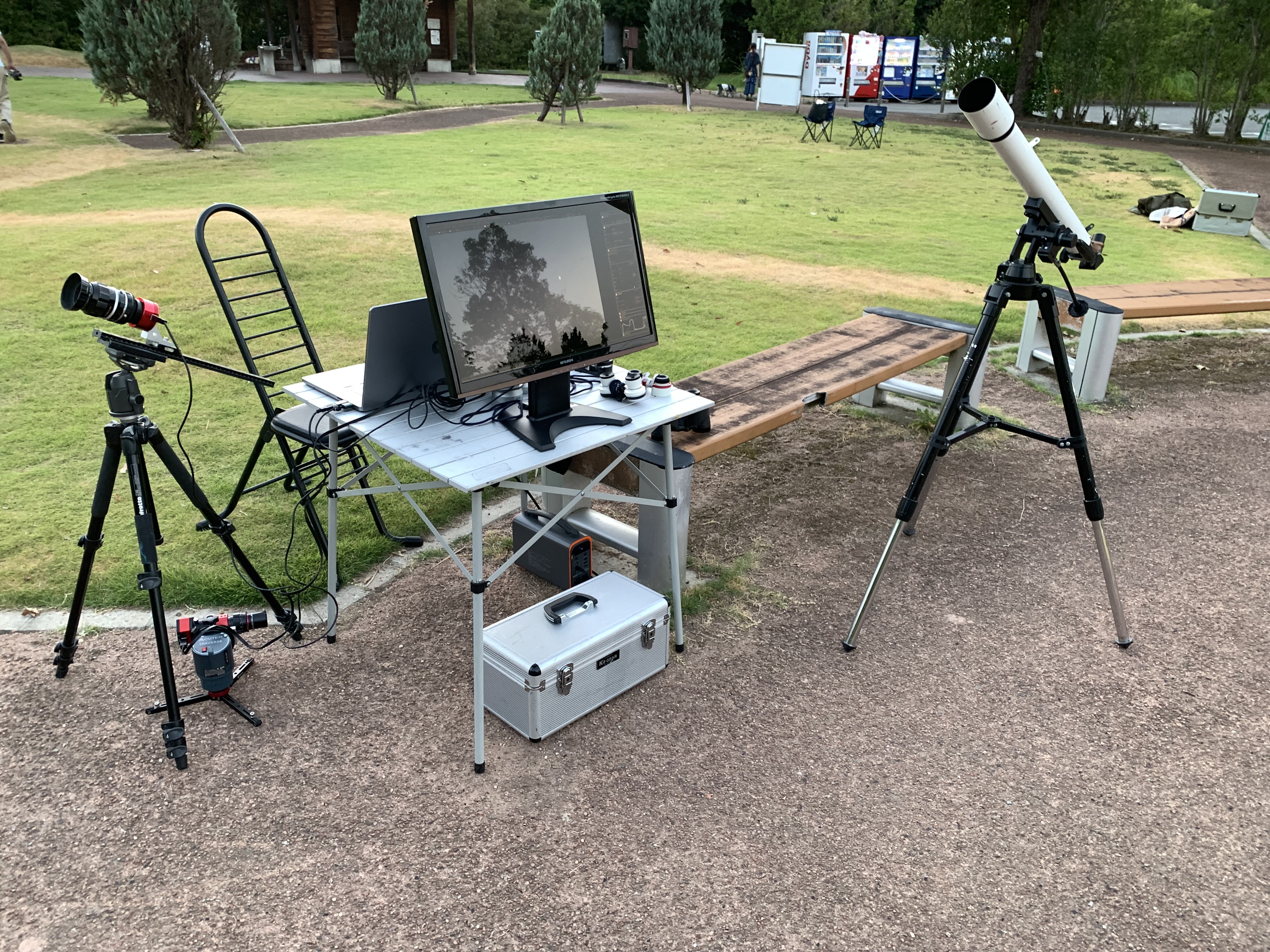この日は天気も良く、望遠鏡は大型のドブソニアンをはじめ、5−6台は出ていましたでしょうか。私はいつもの電視観望と、眼視でスコープテックを自由にいじってもらいました。街からそれほど離れてはいないのですが、天の川がうっすら見えているので、多くの人が集まる観望会としてかなり好条件なのかと思います。この観望会はこれまで継続して開催されてものかと思っていたのですが、なんと今回が初めてとのことでした。主催の方がこの地域で顔が利くらしく、いろいろなツテを辿って今回の開催にこぎつけたとのことです。県天の中では私の後に入った比較的新しい方なのですが、こうやって熱心に活動しているのを見ると私も刺激を受けます。