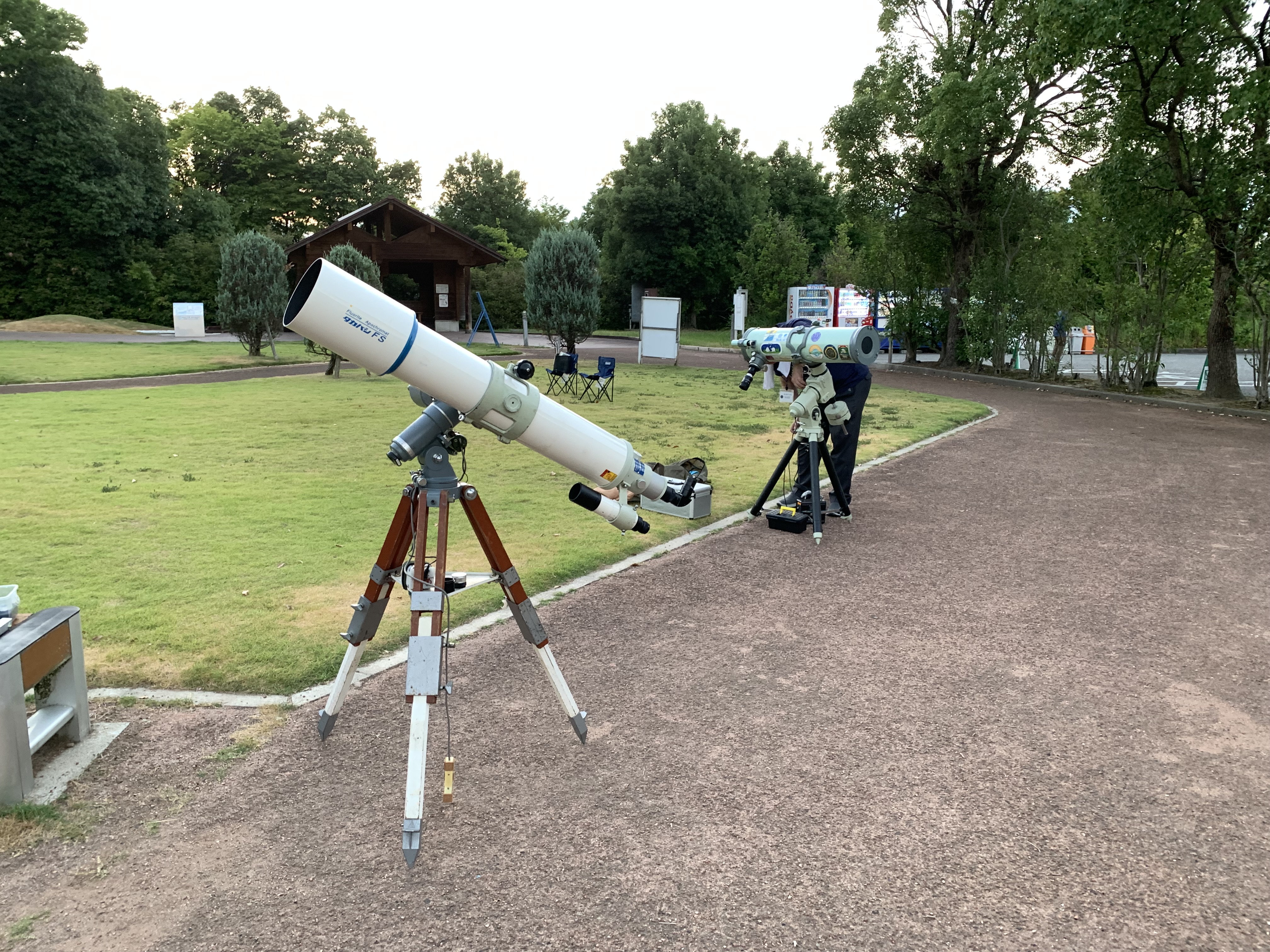 途中土星が上がってきたので、各種望遠鏡で見比べることもできました。私の持ってきたスコープテックは口径も小さく、手動導入の経緯台のシンプルな構成ですが、二つ穴ファインダーを使って小さな子でも「自分で操作できる」という特徴があります。「自分で導入して見る」土星は、実際操作してくれた子にとってはまた格別なのではないかと思います。