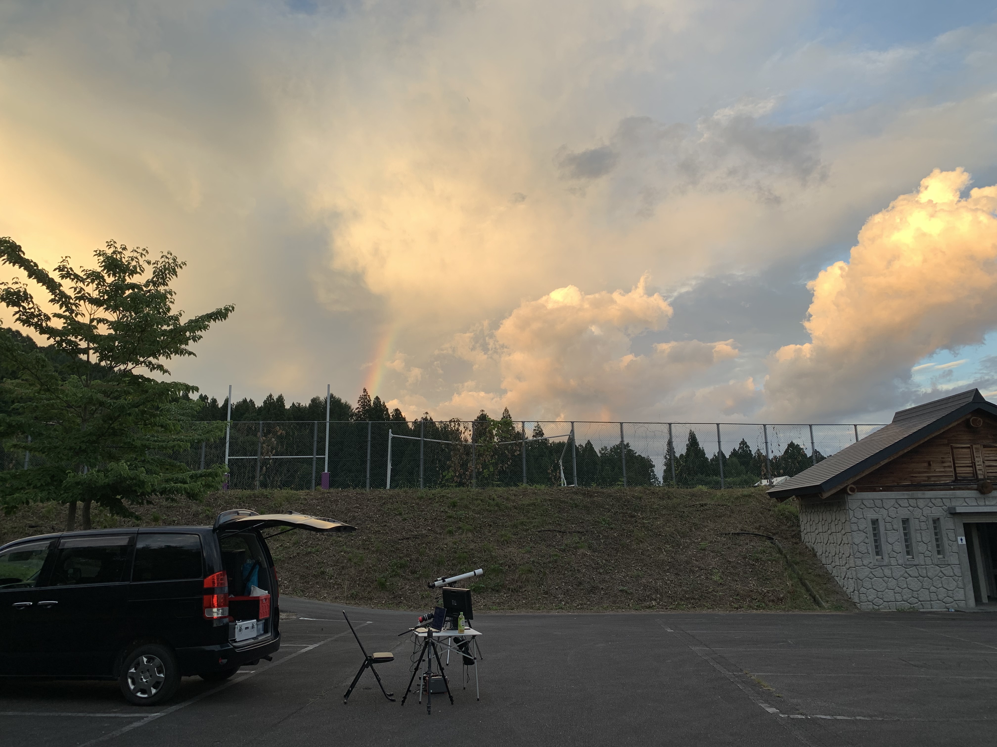 今年はというと、天気がかなりイマイチでした。暗くなりかけの最初の頃はまだ晴れていて、一番星見つけごっこや、月も見えていて、まだ明るいうちからM57を入れて見せたりしていましたが、程なくかなり曇りだして、あまり見えなくなりました。途中雲間から月が時々見えたりしたくらいで、あまり書くことがなく、記事化も見送っていました。