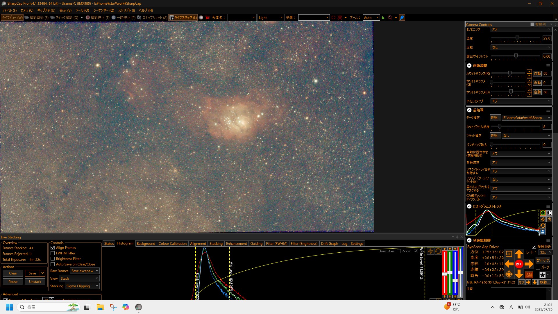 スラドイドを流し始めてからはあまりやることがなくて、おなかも空いたので駅のセブンイレブンに行って最後ひとつ残っていた肉まんを買いました。観望会会場に戻っていざ食べようとしたら、会場で少し話していた小学生の女の子が私の肉まんを見て、お母さんに「わたしも肉まん食べたい!」と言い出しました。「え、でもこれ最後の一個だったよ」と何気なく言ったのですが、どうしても食べたかったらしく、よほど悔しかったのか、私は「肉まんの人」と認識されてしまったらしいです。