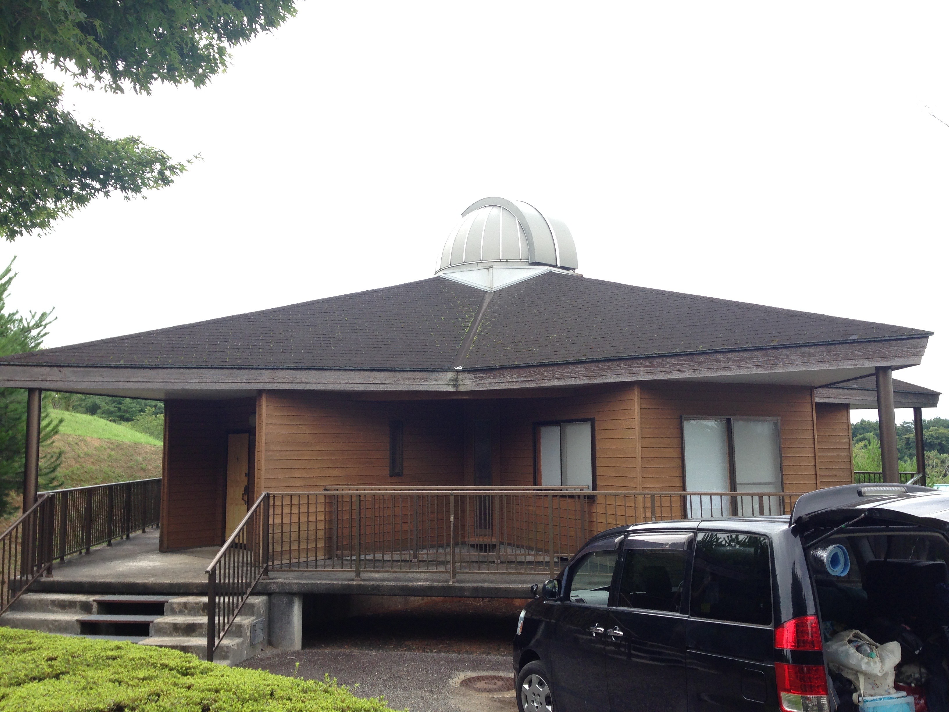 ここで泊まるのは2年ぶりです。ここの特徴は、上から見ると星型になっている大型コテージに、なんと各コテージに望遠鏡が設置されています。しかも6棟あるコテージの3棟には、星の真ん中のとろこが2階まで行けるようになっていて、なんとそこに天体ドームがあるのです。