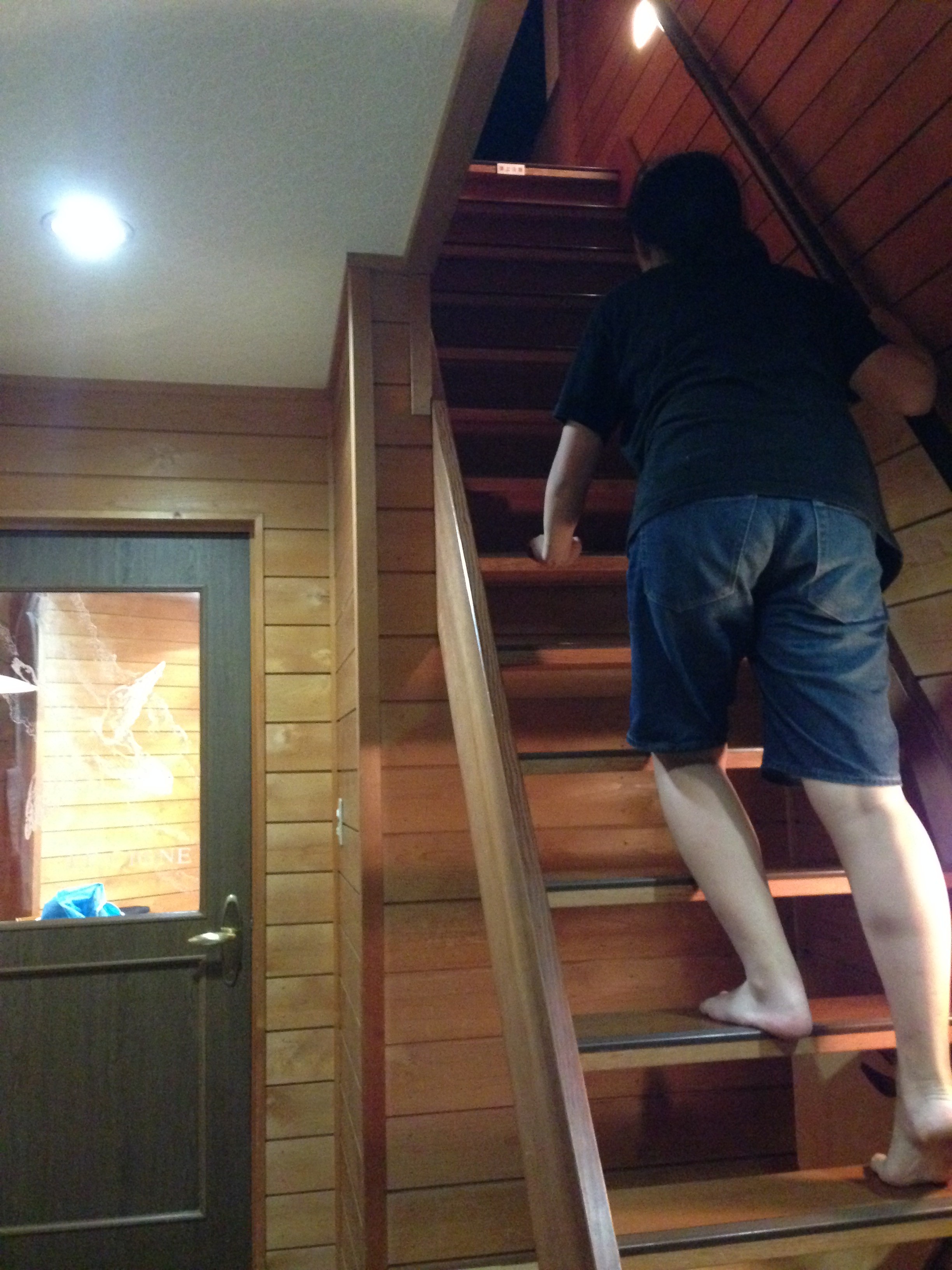 玄関脇の階段を上がるところです。
