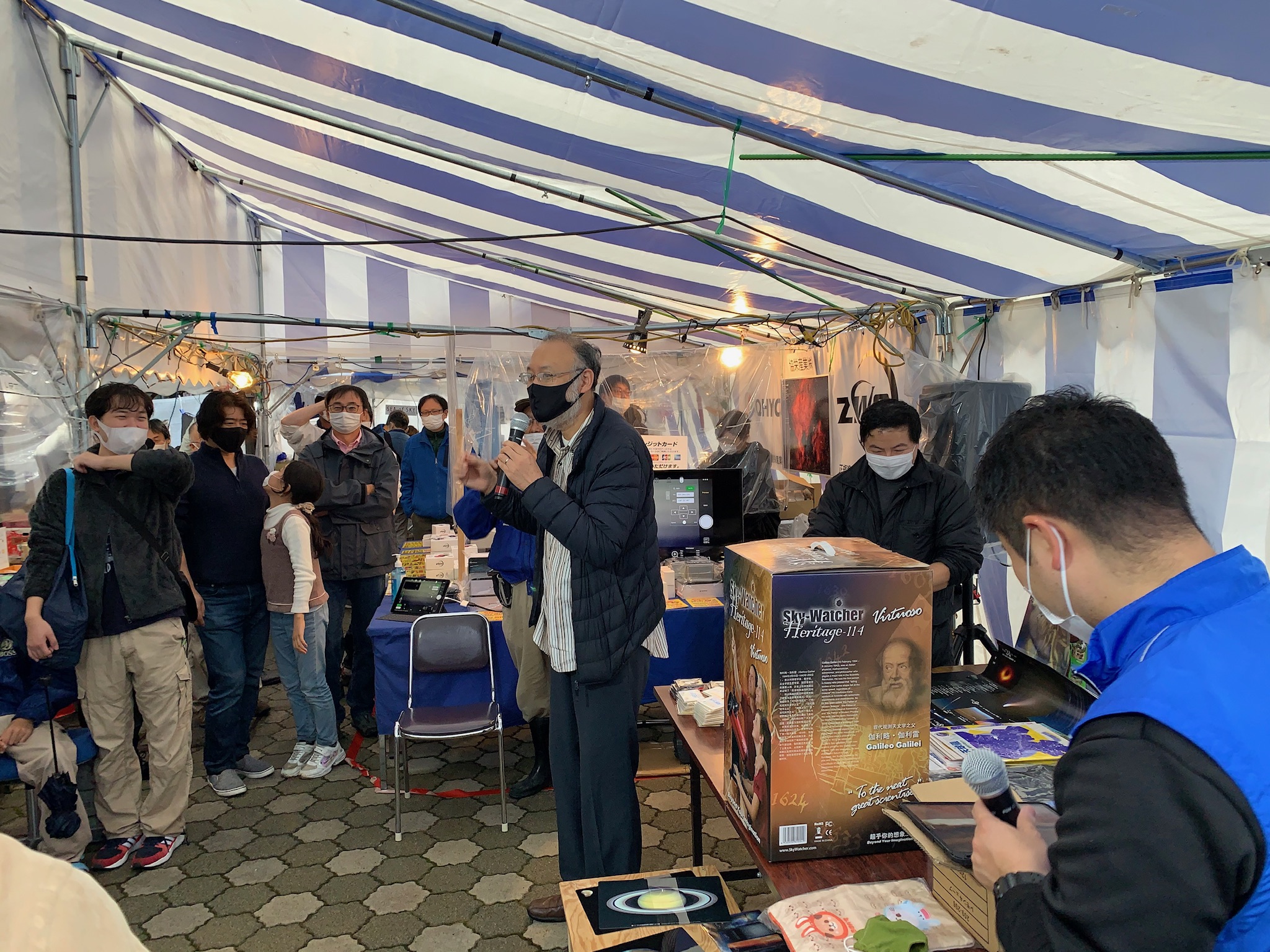ブース廻りでは、まずはOIIIフィルターを手に入れておきたかったので、国際光器さんに行きます。事前に国際光器さんのウェブサイトに行って見たのですが、相変わらずBaaderのナローバンドフィルターはごく一部を除きほとんどが在庫なしでした。今回目的のOIIIフィルターも、あればラッキーくらいに思っていたら、店長さんが前回買えなかったことを覚えていてくれて、2インチのOIIIフィルターがつい最近入荷したと教えてくれました。星まつり価格で安かったです。こういうところで交通費分とかを多少なりとも相殺できるので、買い物目的で星まつりに来て、ついでに星まつりを堪能するというのもありだと思います。