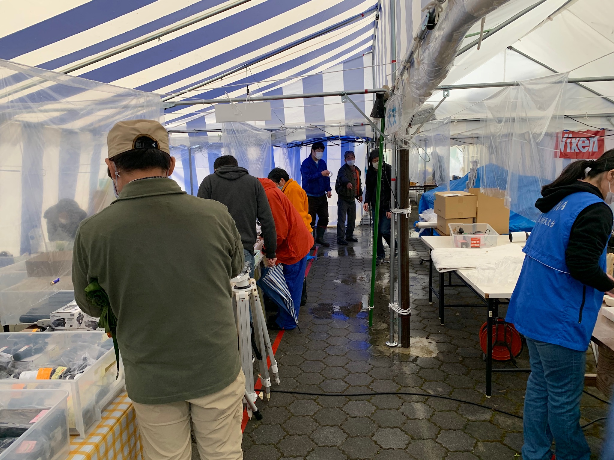 会場では毎年顔を合わせているでかでかまんさんのグループに色々ご馳走になりました。お好み焼きにはじまり、おでん、ベーコンなど、どれもとてもおいしかったです。朝会場に到着した時にメイン会場に近い方の駐車場が一杯だったのですが、でかでかまんさんには「機材出すんですよね?バイクが止まっている所を空けましょうか?」と親切に言っていただきました。今回はあまり無理をしない予定だったので、お礼だけ言って別の駐車場に止めることにしました。このメンバーには毎回福島では親切にしていただいて、とてもありがたいです。