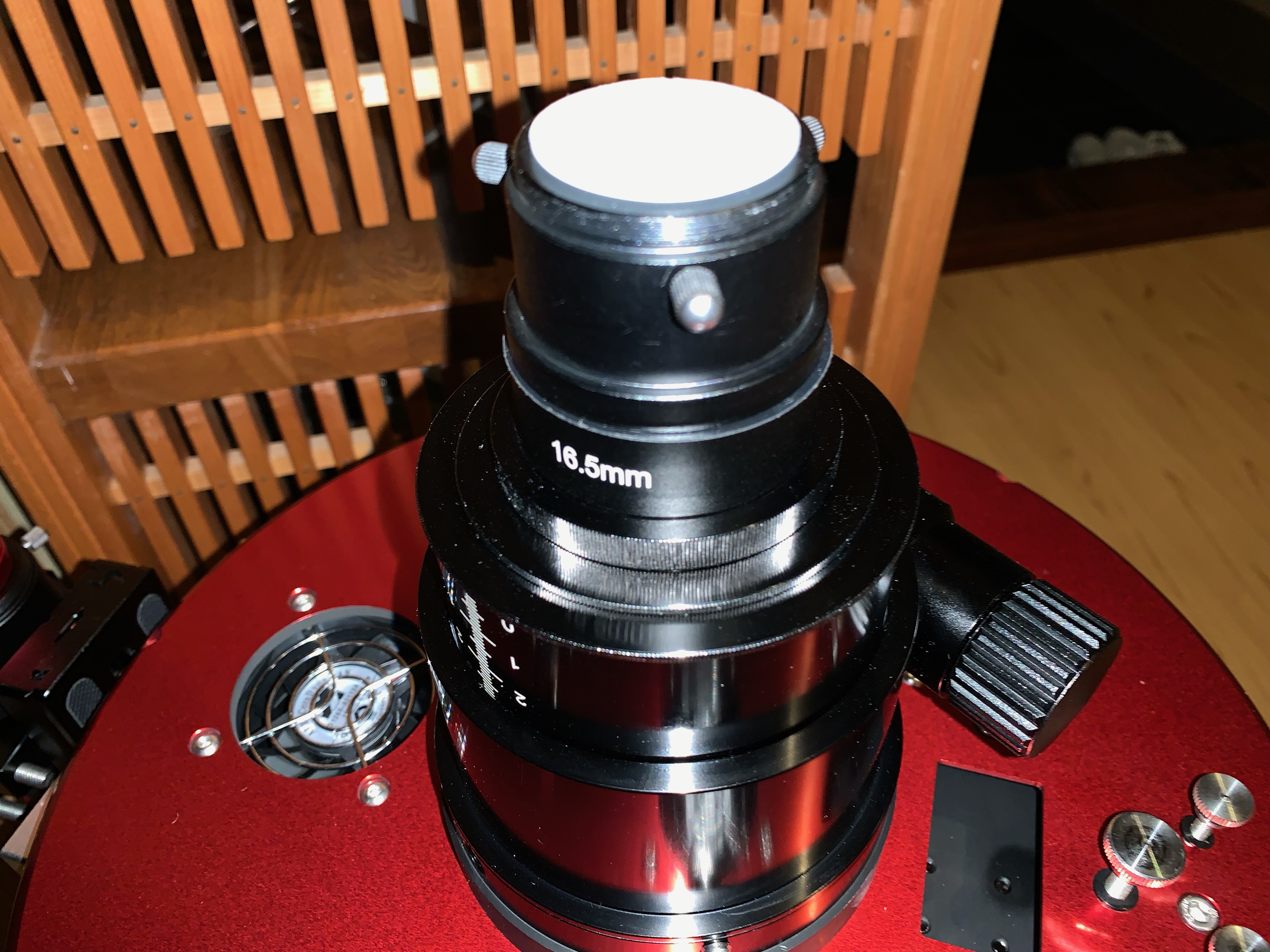 ほぼどの回も、私はずっと電視観望でUranus-Cのテストをしていたので、直前までそこそこ明るいPCの画面を見ていました。PCがある場所から45cmドブソニアンまでは10m位離れていますでしょうか。途中Hさんが撮影している場所を通るので、見えにくい目で注意しながらHさんを避けてドブソニアンのところまで行き、これまた見えにくい目でかんたろうさんに接眼部の場所を聞き、頭をぶつけたりしないように注意しながらアイピースを覗きます。