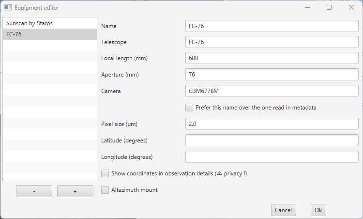 - 鏡筒: Takahashi FC-76(f600mm、F7.9)