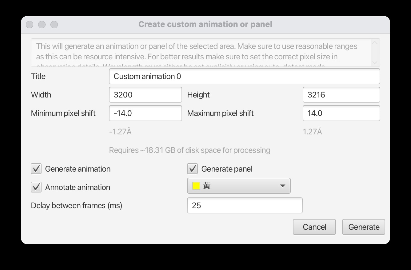 この領域選択はどこでもできます。最初からこんな大きな全景範囲で処理すると大変なので、まずは小さなサイズで試してみるといいと思います。例えばプロミネンスなどです。