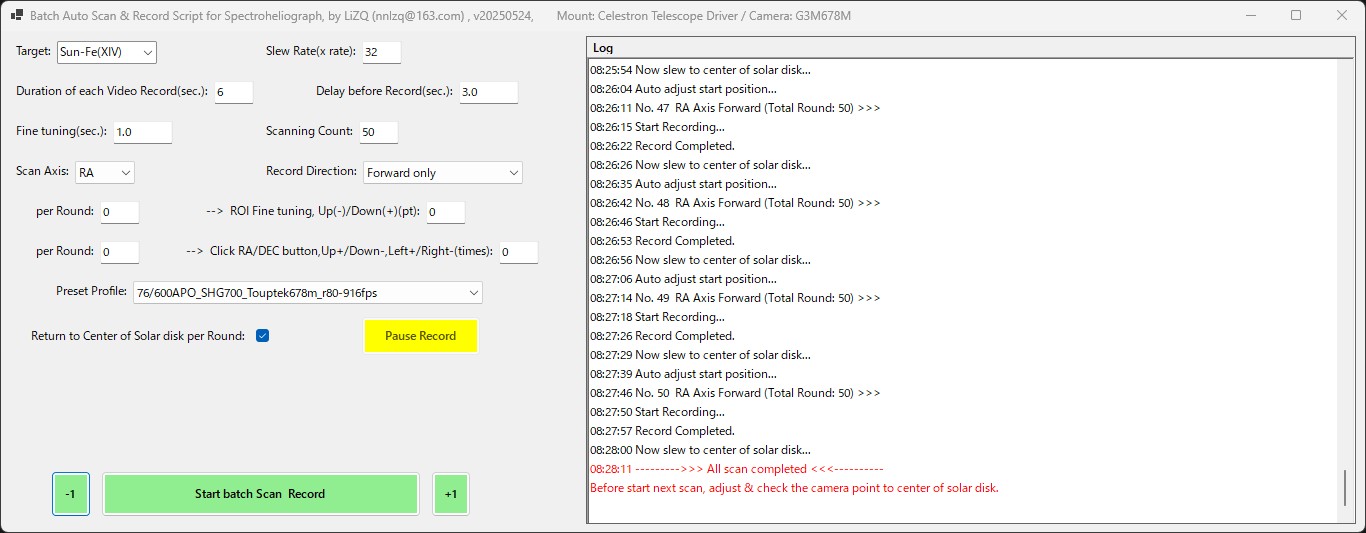 その一方、最近ずっとテストを続けている分光撮影では、そもそも一回の撮影に赤道儀をスキャンする必要があるなど、手間と時間がかかり、更に撮影後の画像処理も結構手間なので、連続で撮影してタイムラプスかすることはあまりされていません。でも不可能ではないはずです。今回は、SHG700での分光撮影で実際どれくらいのペースで連続撮影ができるか試してみました。