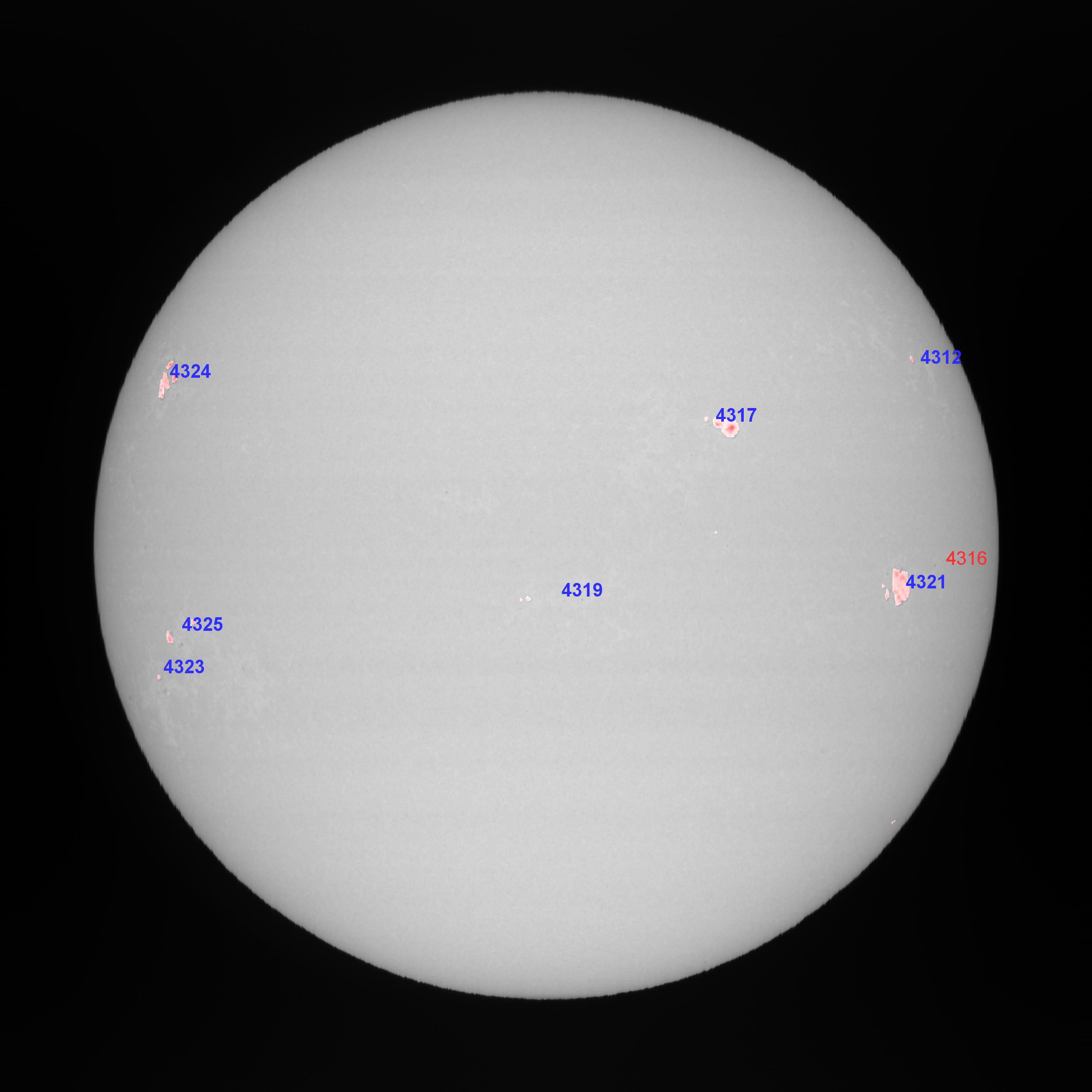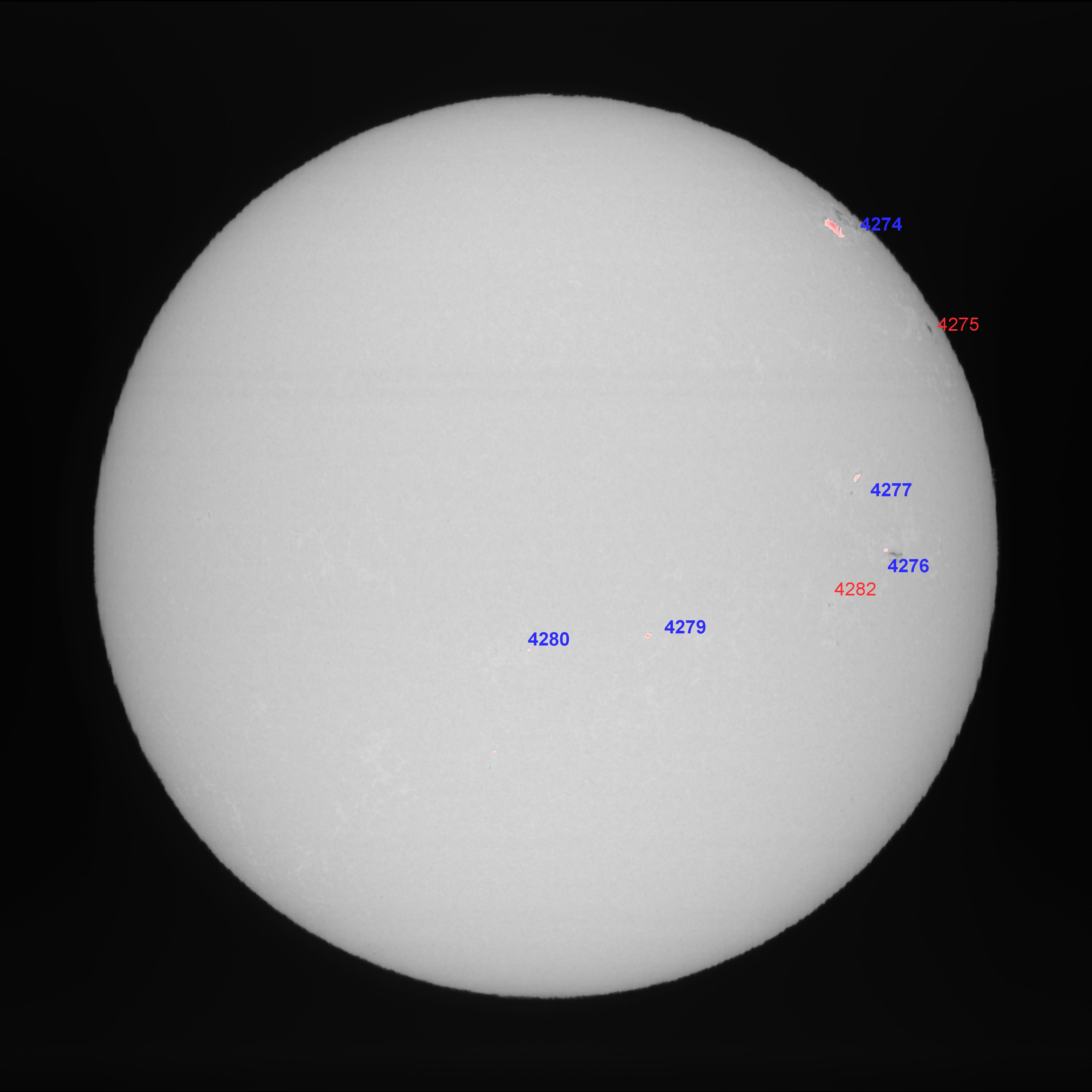 活動領域と黒点のAR番号です。まだにぎやかですね。