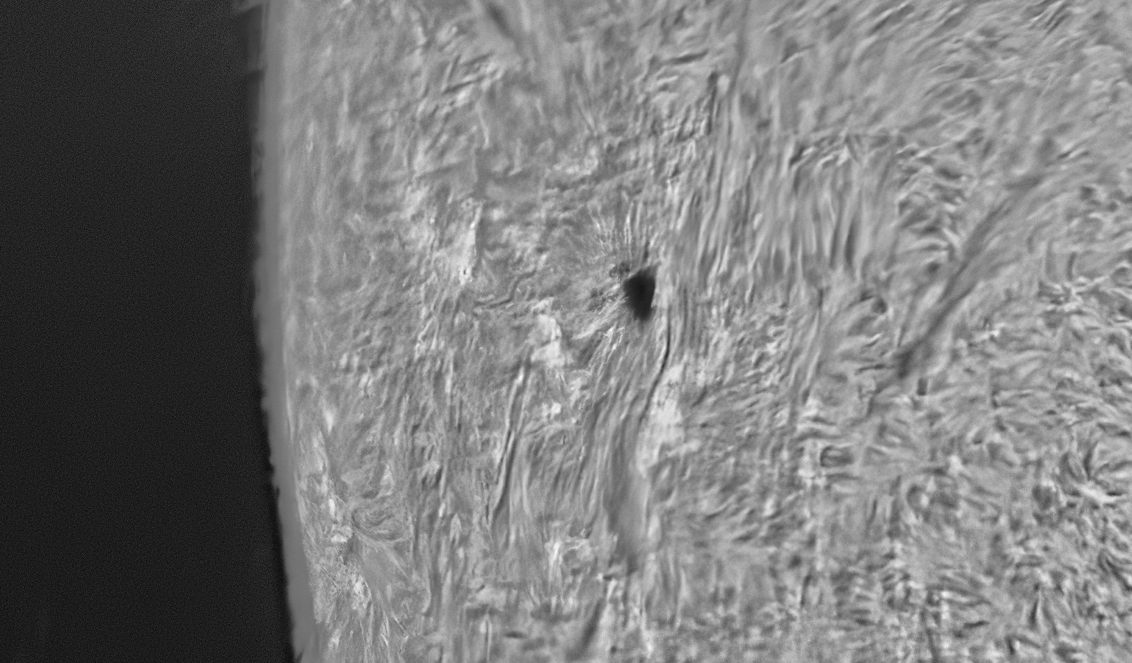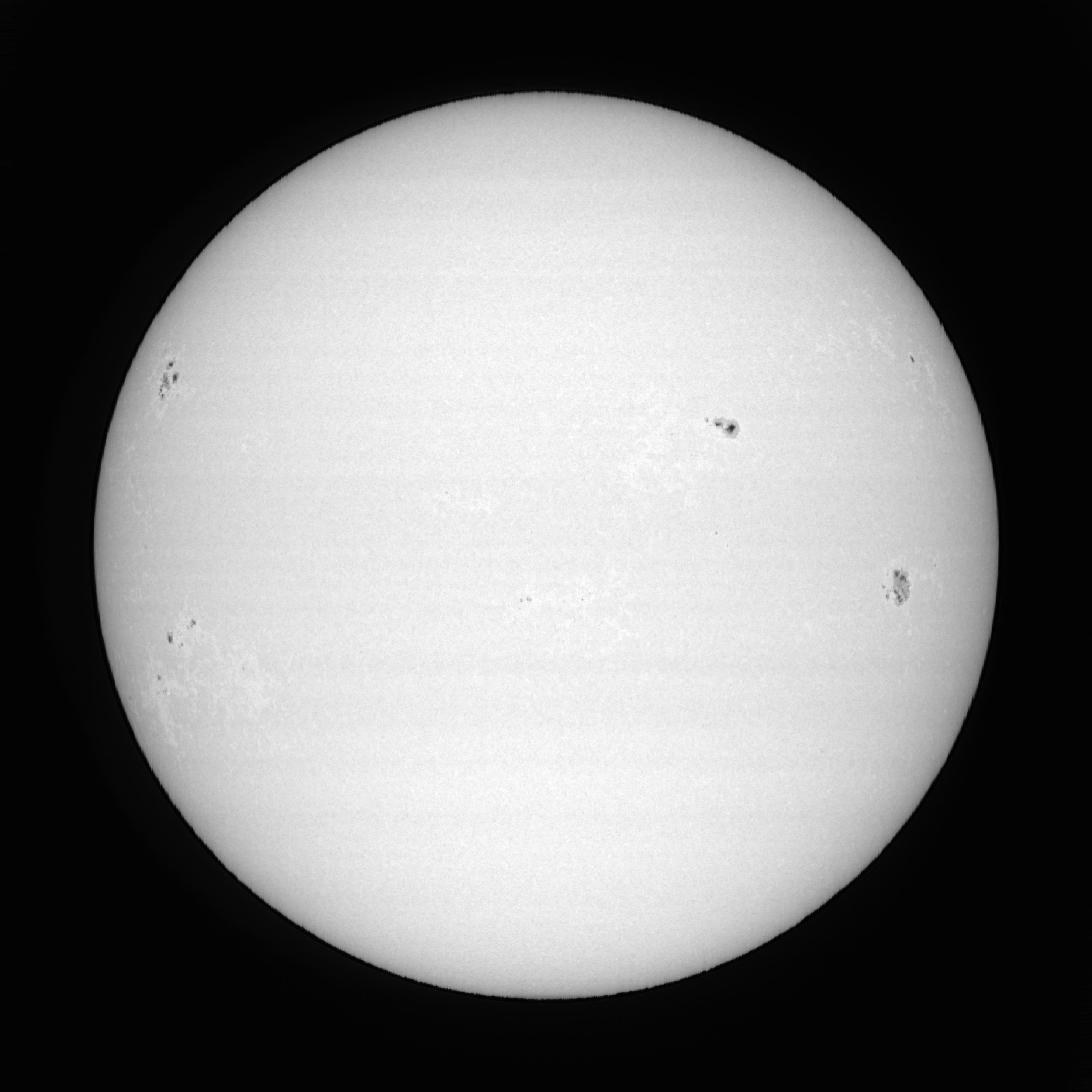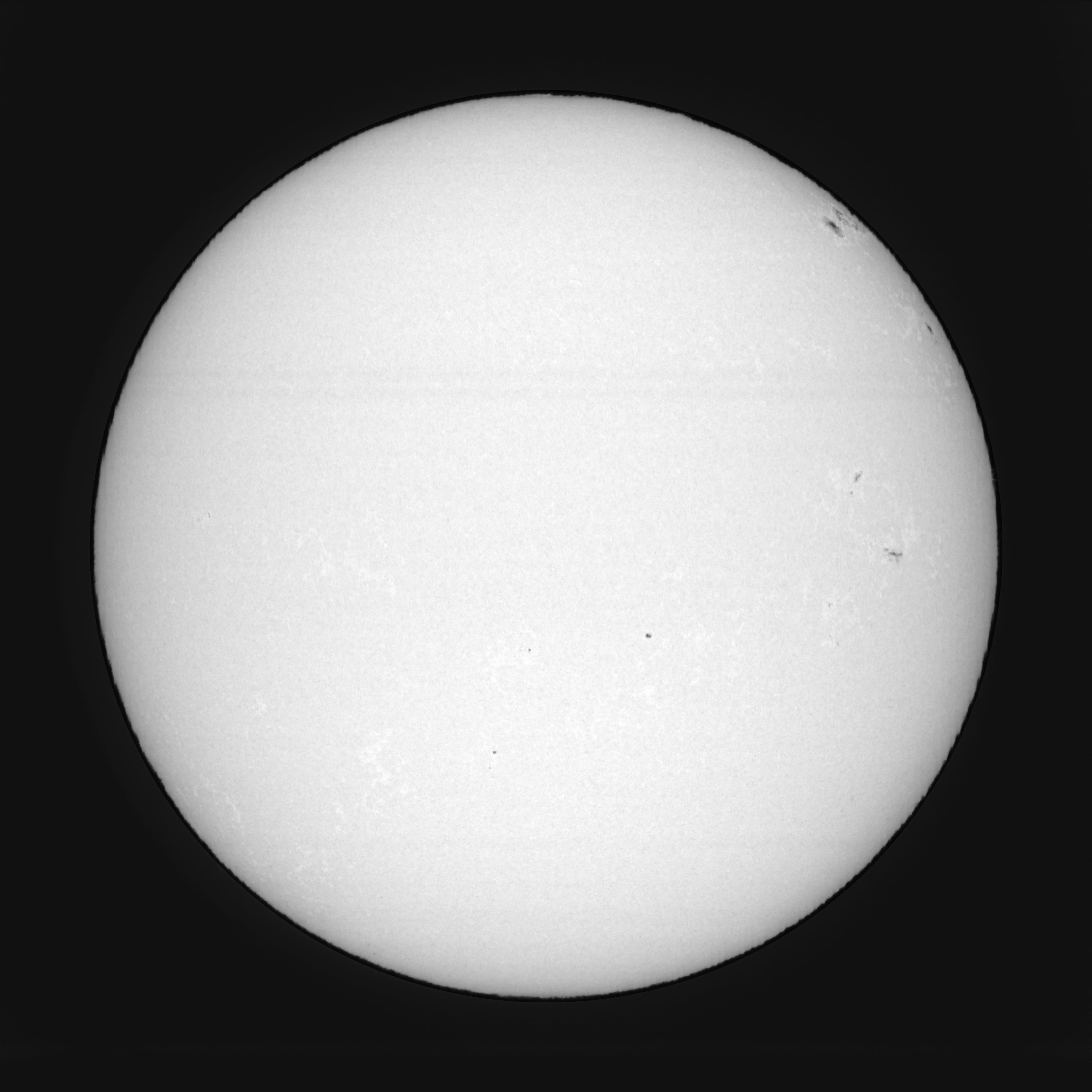 連続光です。1枚画像なので粗く見えます。まだコンスタントに黒点は出ているようです。東端から出てくる黒点もまだ期待ができそうです。