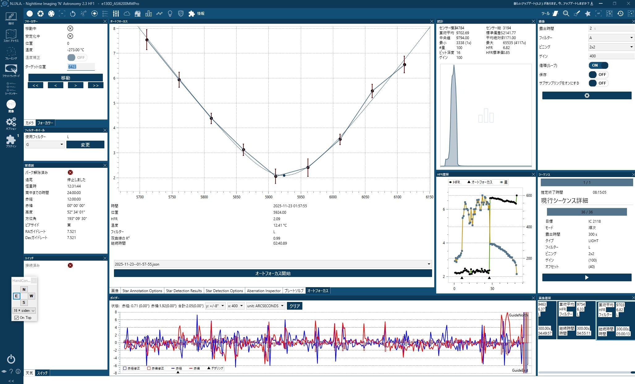 - カメラ: ZWO ASI294MM Pro (bin1、常温)