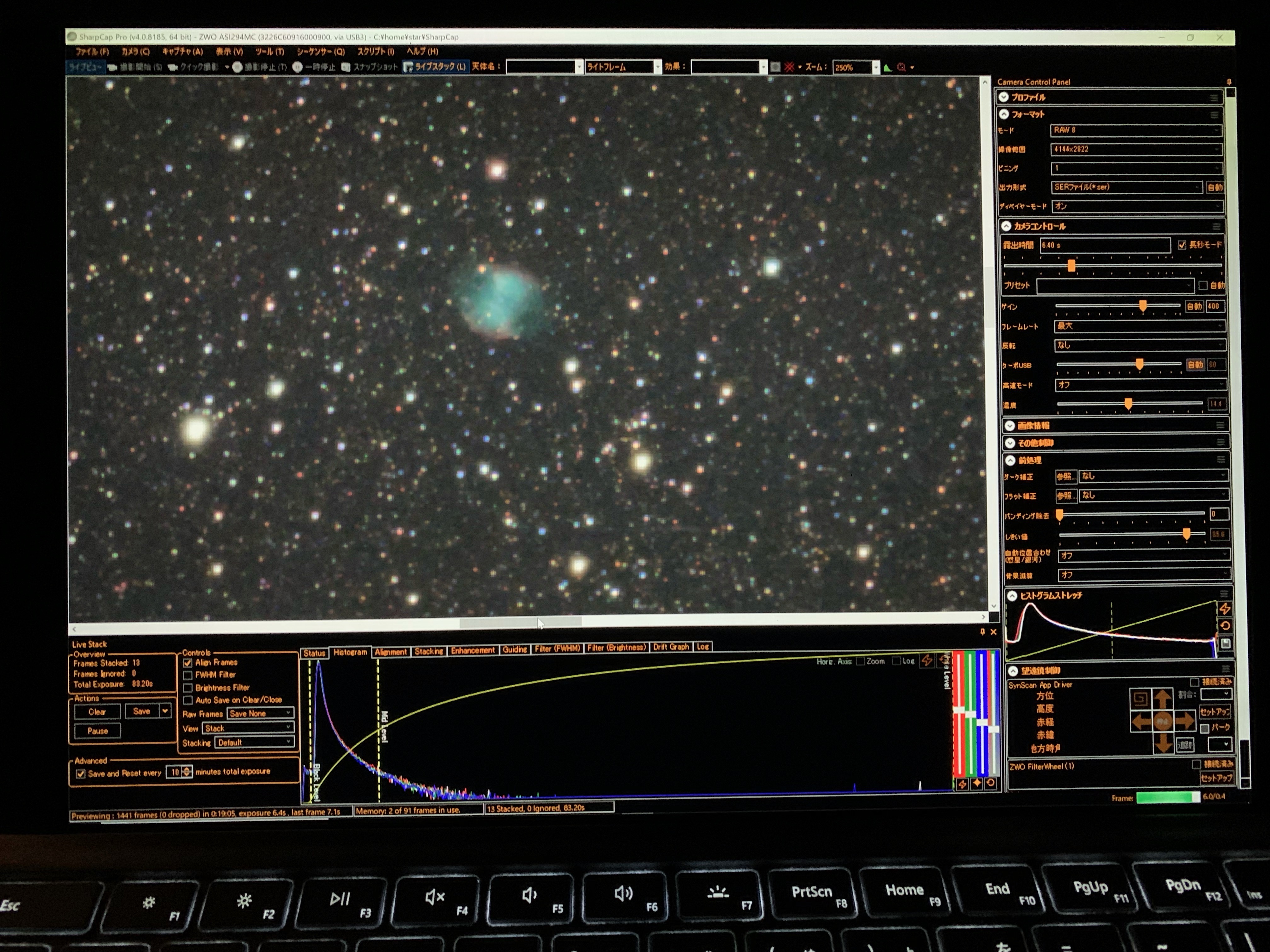 最近思うのは、自宅だとそこそこかなりの淡い所(例えばまゆ星雲とか、ゴースト星雲とか)までは出るのですが、本当に最淡の所はかなり時間をかけてもほとんど出てこないことがわかってきました。例えばゴースト星雲の手の下のヒレとかです。光害地なので、ある意味当たり前かもしれませんが、どこまで出るか挑戦している最中で、だんだん限界が見えてきたような所です。明るい天体は自宅でもいいのですが、本当に暗い天体はやはり遠征でとか、うまく切り分けていくのがいいと思うようになってきました。